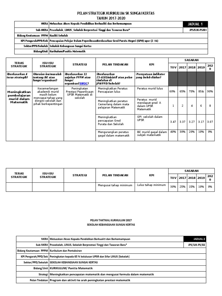 Pelan Strategik Dan Pelan Taktikal Panitia Matematik Pdf