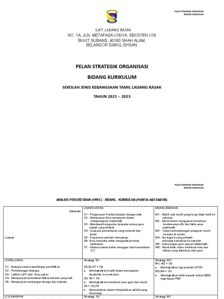 . TIRAM JAYA 45500 TANJONG KARANG SELANGOR Pendahuluan Perancangan. Analisis Swot Panitia Matematik Pdf. Ps Sr 2017 2020 Matematik.